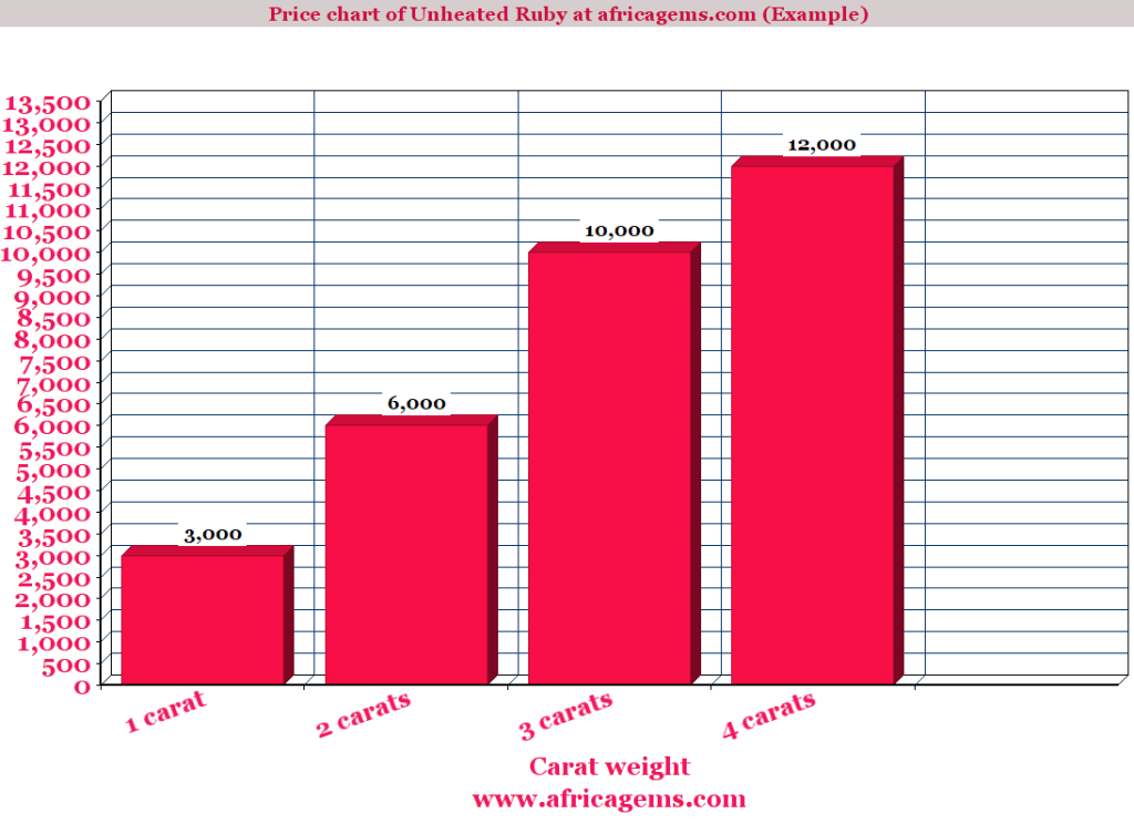 Pricelist chart from Unheated/Untreated rubies from Mozambique