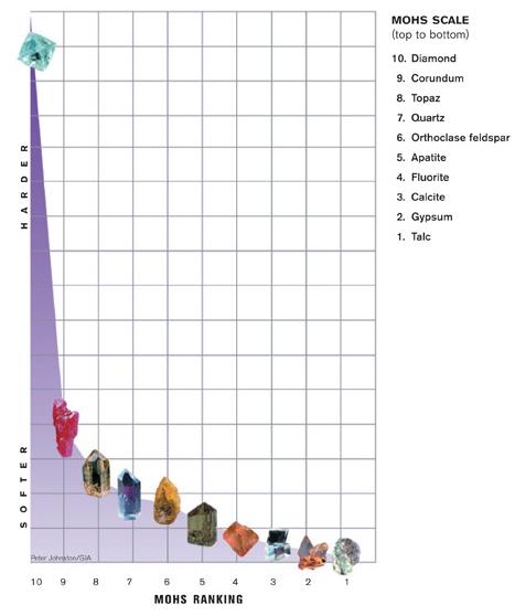 The hardness of Gems and minerals is measured on the Mohs scale. Hardness is measured in numbers that are based on the moderate ease or difficulty with which one mineral can be scratched by another. But the Mohs scale is illusory.