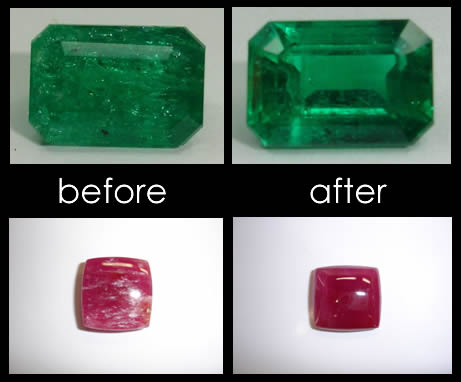 (Some guesstimates state that more than 90% of emeralds in the market are fracture-filled. It is unsafe to clean these fracture-filled Emeralds ultrasonically or with steam. Ultrasonic vibrations can deteriorate already-fractured stones, and hot steam can cause oil or unhardened resin to sweat out of cavities.) - Light and chemicals can cause the oils, resins, and polymers used to fill surface-reaching cavities to amend in appearance or corrode.