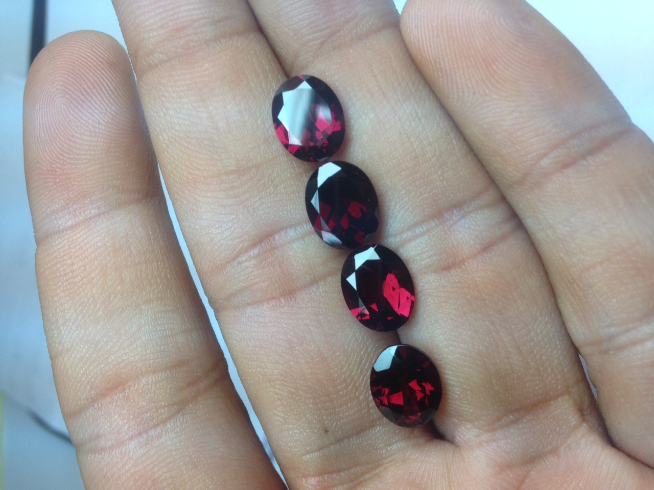 Pyrope Garnet Colour – It is also called “Indian Garnet”. This color of garnet comes dark red with red luster in small sizes but in big sizes, this color goes black and does not look good. For example, if you buy 7×5 ovals of pyrope garnet then you will get good color dark reddish but if you go for 15×8 Ovals pyrope then you will get blackish-red.