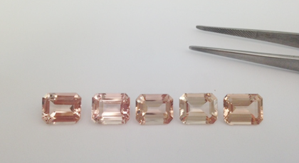 - The only peach gemstone that comes heated only and no other treatment. Rose quartz is transparent and too cloudy while Pink Spinel is not available enough in the market to compete with Morganite. Below is the world’s first Color chart of Morganite in 2015. This color chart of morganite gives everyone a base to communicate what is needed in order to communicate with far away sellers and buyers, talking via emails.