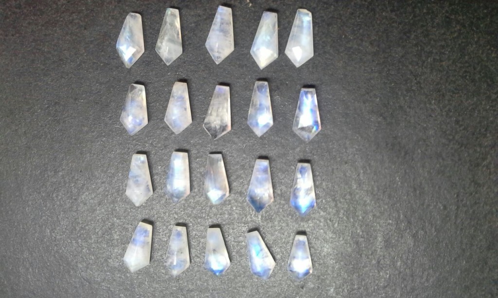 This work was a Kite Project that we made for a very special designer for Rainbow Moonstones. A similar project was made in a couple of different colored gemstones.