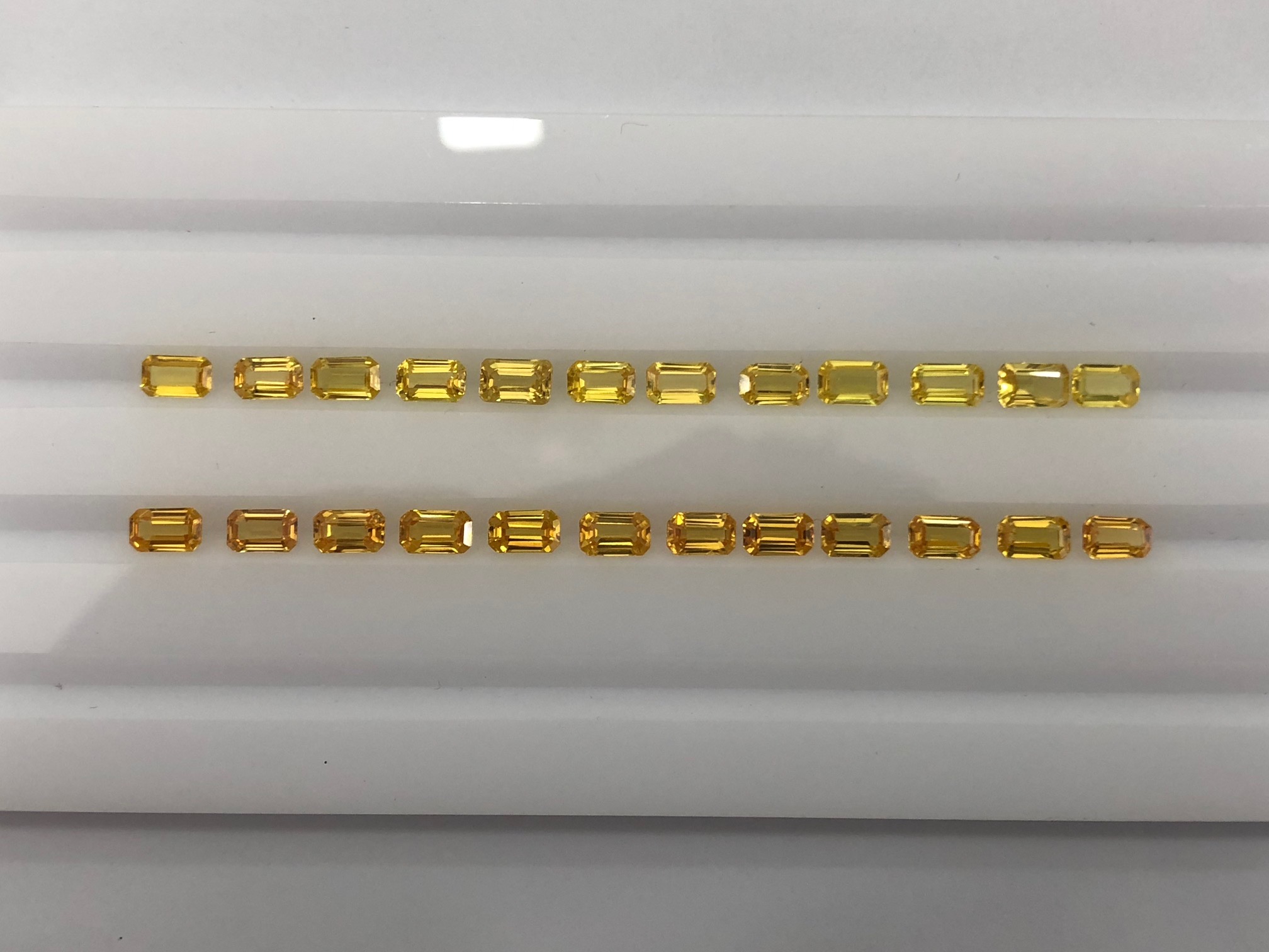 Yellow sapphire octagons we supplied in 2018 were in two shades, shade #1 and shade #2 as seen in the photo.