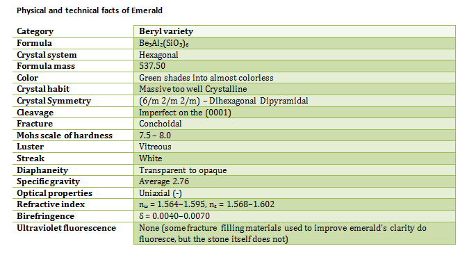 Physical and technical facts of Emerald