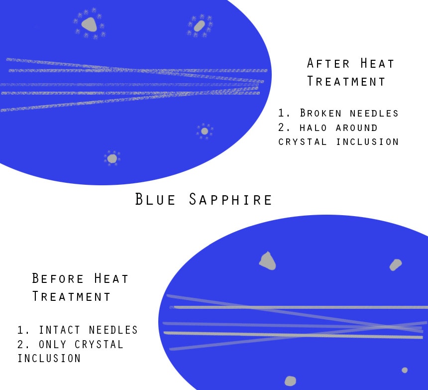 In the market, almost 95% of the Sapphires are heat treated. The higher amount of treatment in the sapphire, the lower the price, as the corundum’s rarity creates its price. There are different levels of heat treatment that affect the price of Sapphire (However most labs in 2016 only give a Heated and Unheated certificate). Rubies are more valuable, which is why Gemstone laboratories can certify whether the Ruby is H1, H2, H3. Or the extent of heat in the ruby.