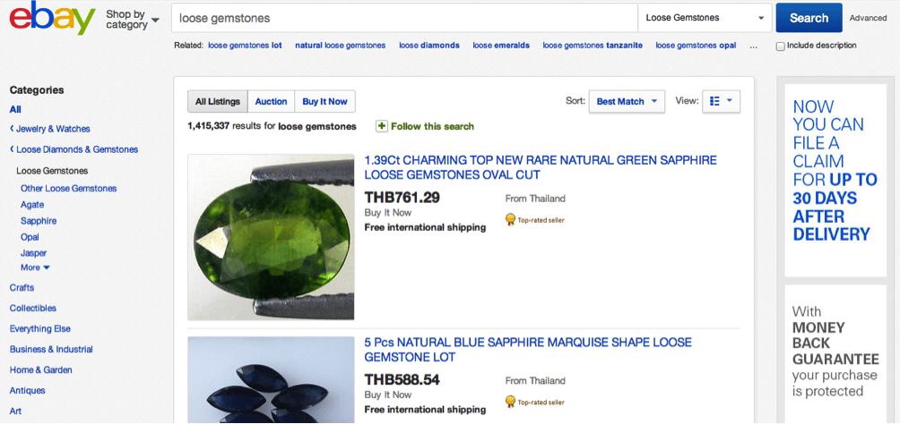 48 out of 50 sellers for this keyword on eBay are from Thailand. Names of some of the top sellers from Thailand for the keyword “Loose Gemstones” are: