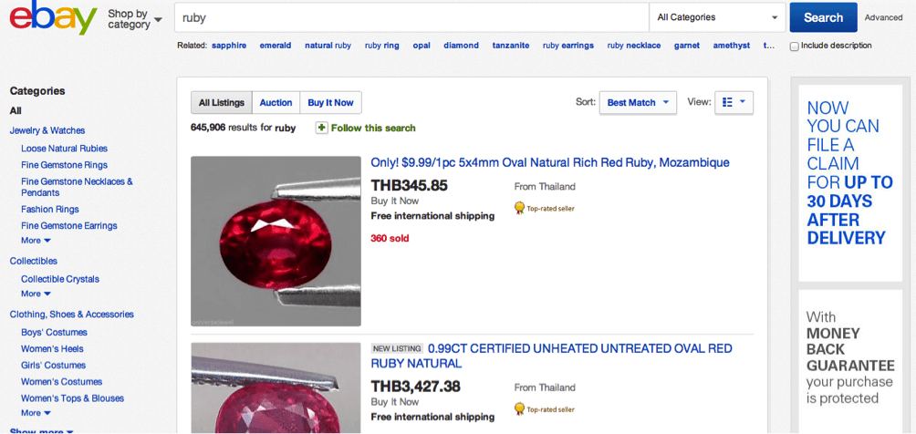 50 out of 50 sellers for this keyword on eBay are from Thailand. Names of some of the top buyers from Thailand for the keyword “Ruby” are:
