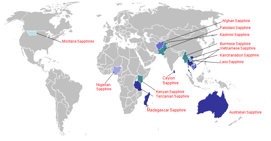 Burma (now called Myanmar since obtaining independence from the British Empire) is another long-time producing country of good quality blue sapphires. Usually, Burmese sapphires are described as royal blue, typically on the darker side of royal blue. Burma does produce excellent stones, usually in smaller quantities but larger the upside is that the stones usually are larger in size.