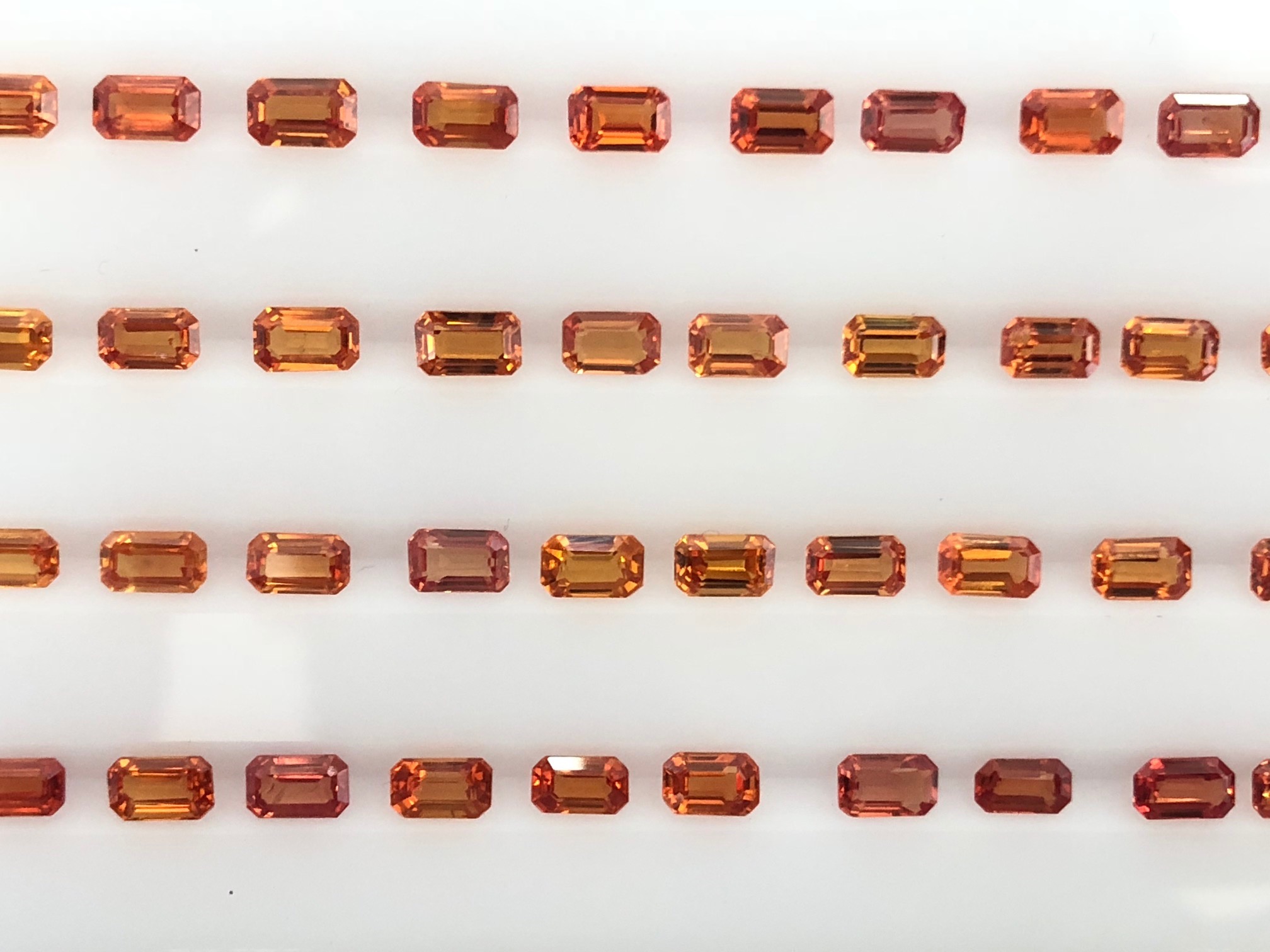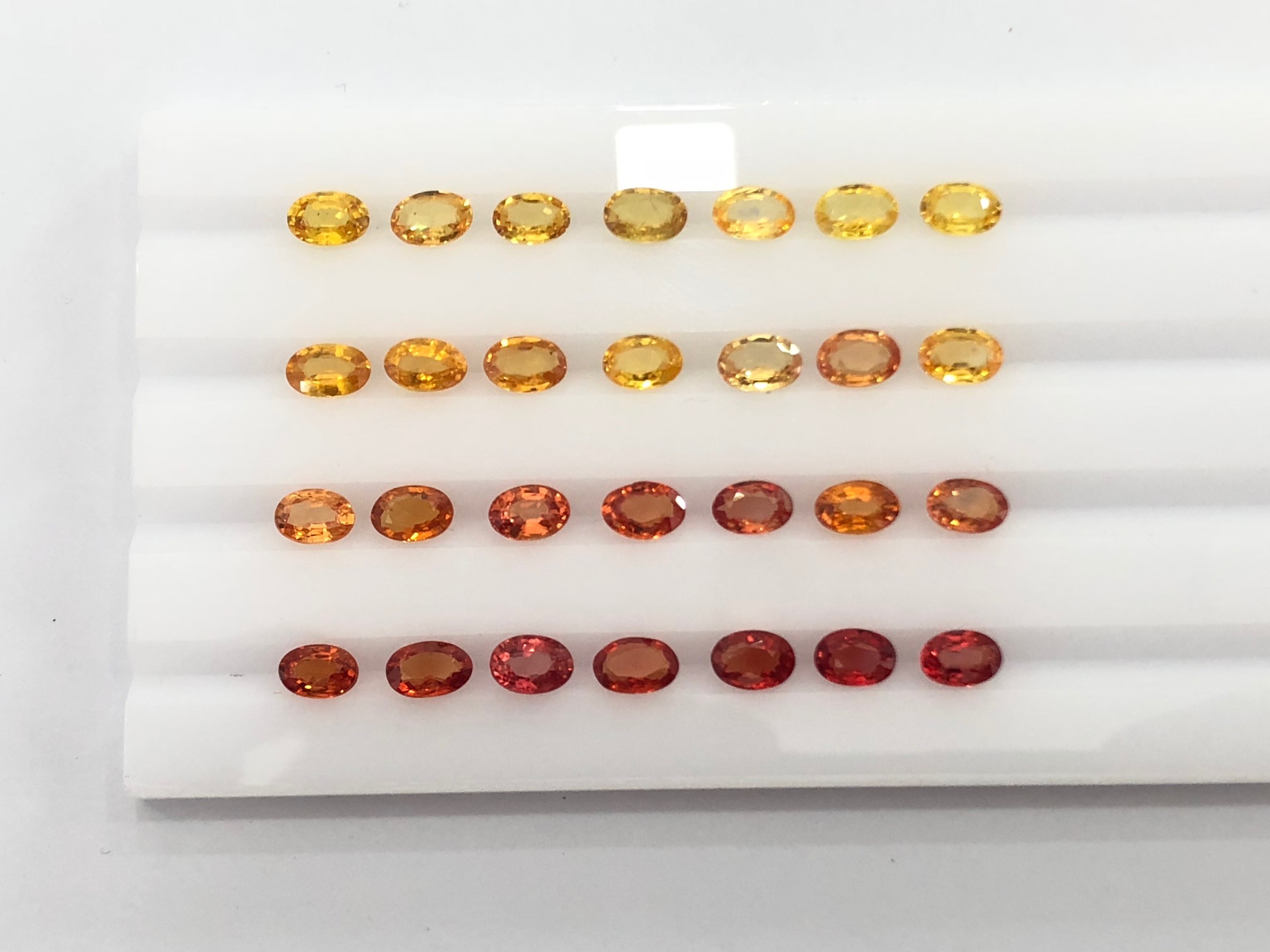 These sapphire ovals in yellow, yellow orange, orange and orange red colors were supplied regularly in 5×3, 6×4 ovals to a jewelry manufacturer.